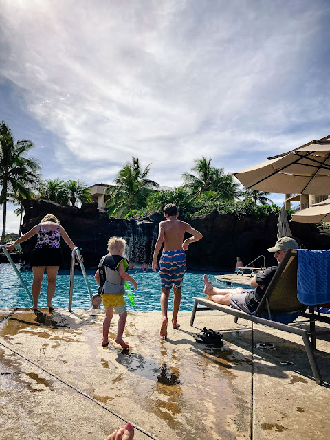 We took the other kids to Poipu beach again. It's nice for little ones since the big waves are blocked by a rock wall so it's like a little pool for them.