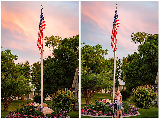 That night Bryan called me from mowing (for like the third time that week) the lawn and said get out here and get a pictures of the flag. The sky was incredible. My Grandmas favorite color is that sky blue pink. I took the photo and sent it to her little photo frame she has. It was her favorite photo.
